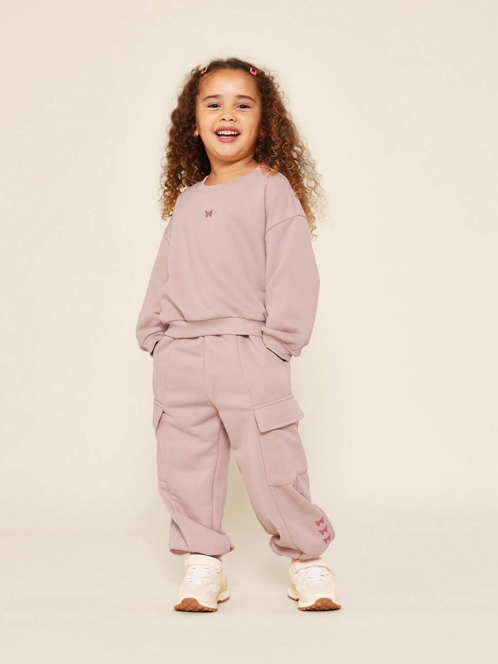 SUMWON Young Girls Everyday Play Crew Neck Sweatshirt And Cargo Jogger 2 Piece Set With Butterfly Graphic Print Vacation