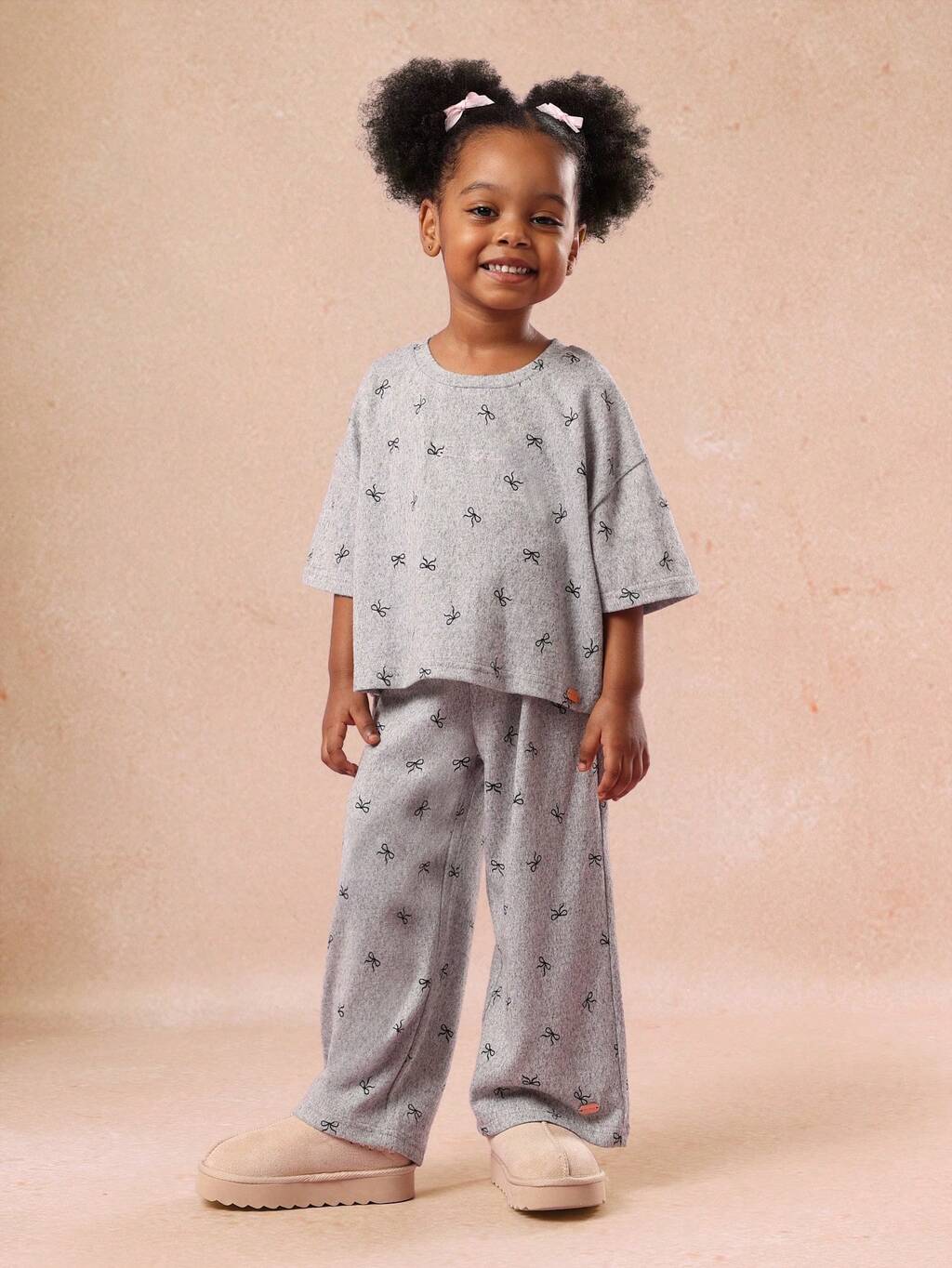 Short Sleeve Tee And Trouser Set With Bow Print