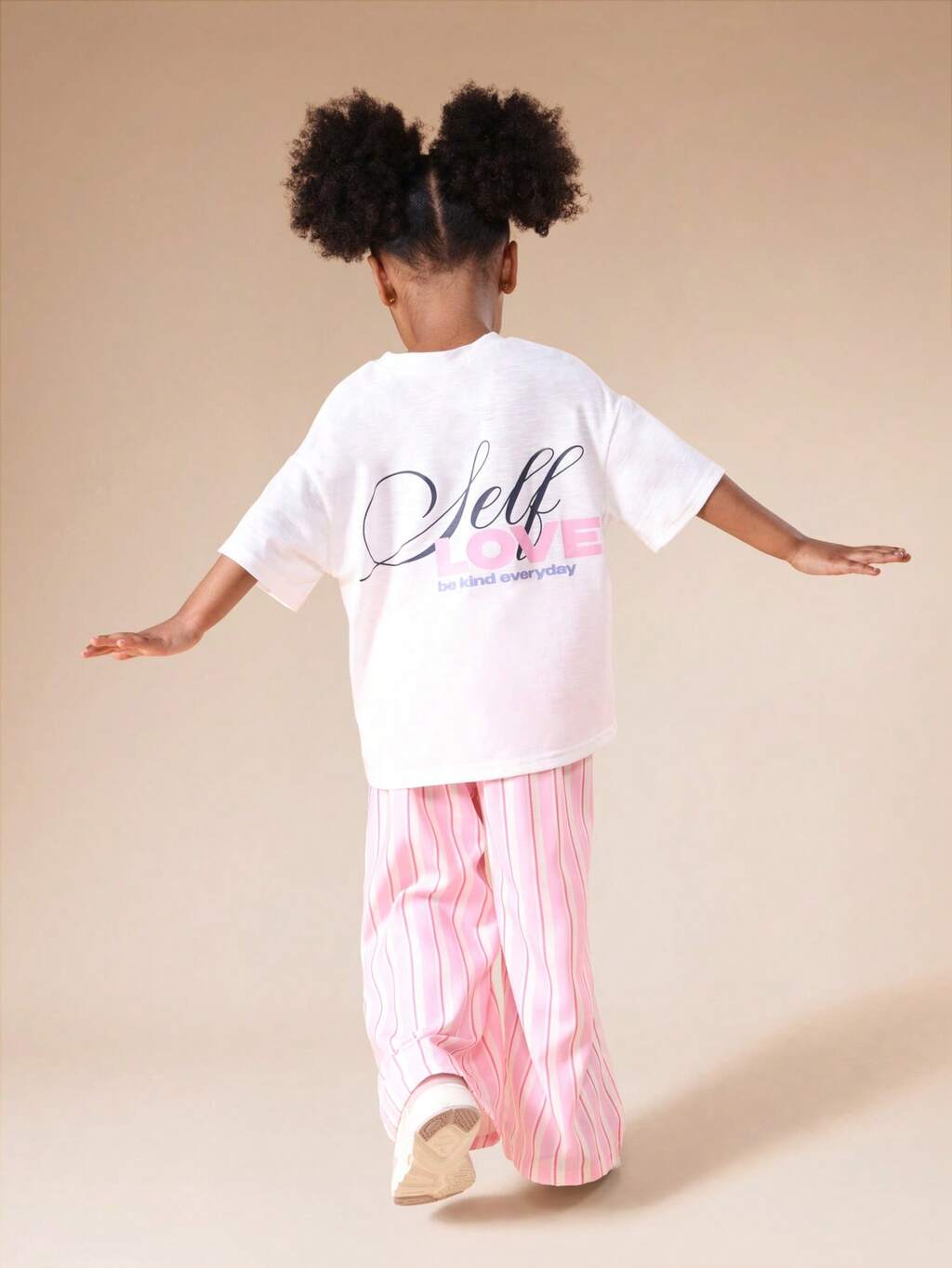 Love Print Tee With Striped Ruffle Pants