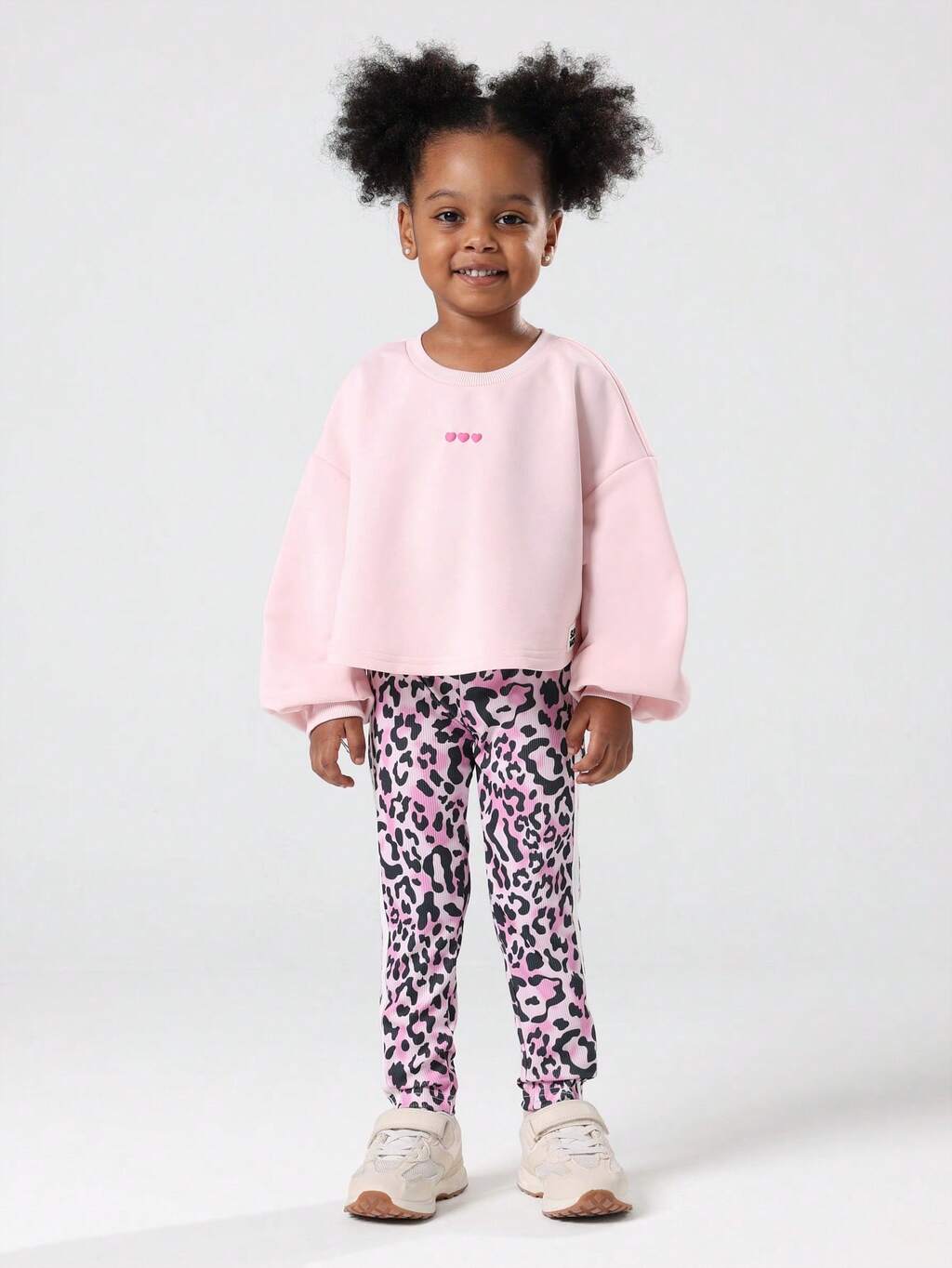 Oversized Sweatshirt With Pink Heart Print And Leopard Leggings