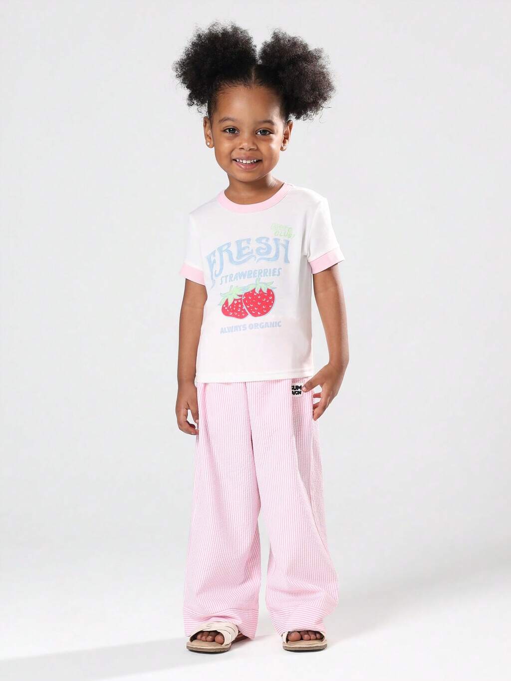 Fresh Strawberry Print T-Shirt With Wide Leg Pants