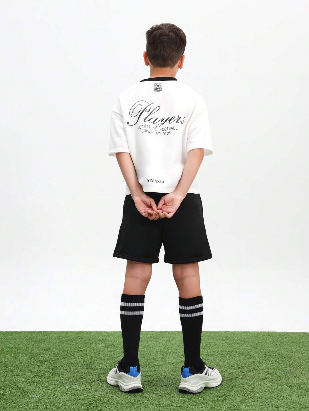 Boys Players Soccer Football Society Crew Neck Short Sleeve T-Shirt And Elastic Waist Shorts Two Piece Casual Summer Co-Ord Set
