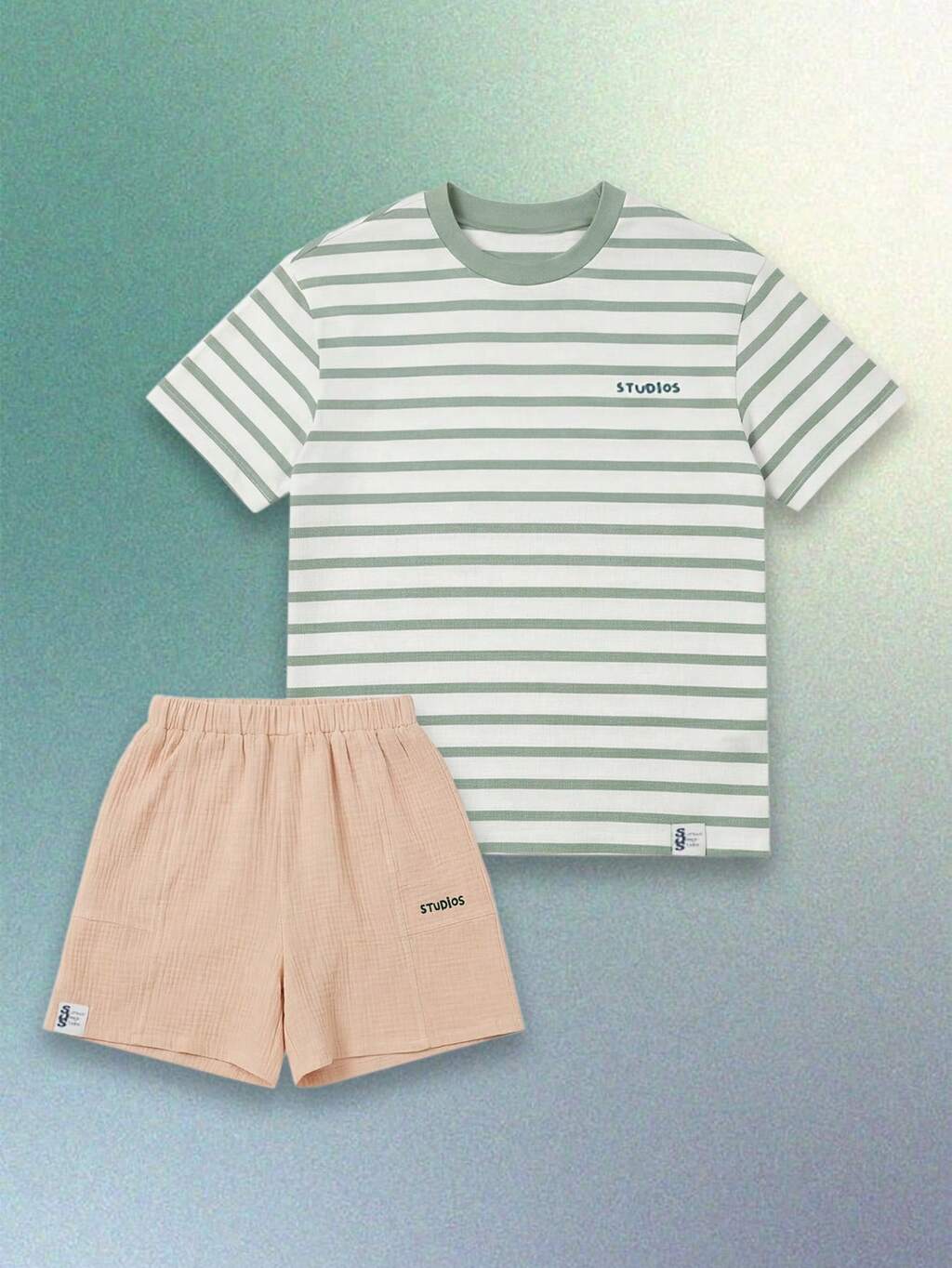 Boys Tween Coordinated T-Shirt And Shorts Set Casual Summer Wear Color Block Striped Design Crew Neck Short Sleeve Outfit Comfortable Everyday