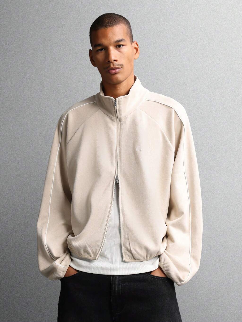 Full Zip Mock Neck Track Jacket With Clean Lines
