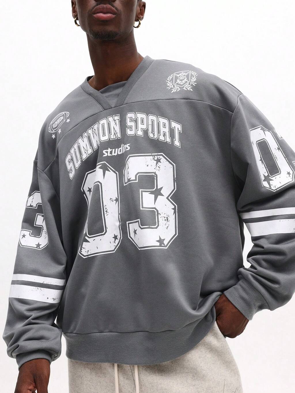 Oversized Crew Neck Sweatshirt With Varsity Numeric