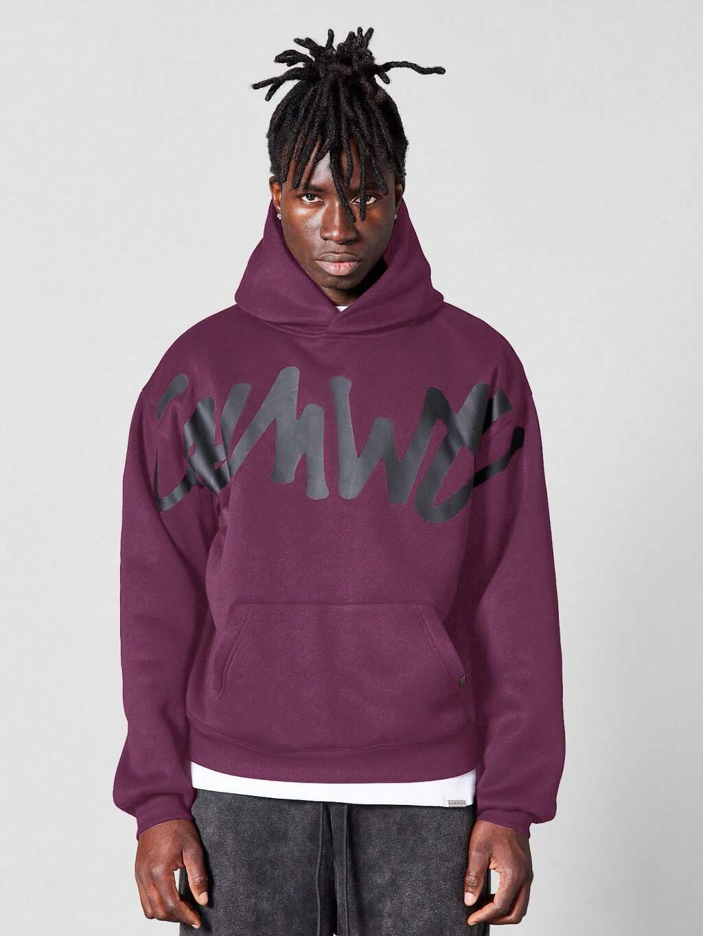 Brushstroke Text Design Hoodie With Centre Pocket