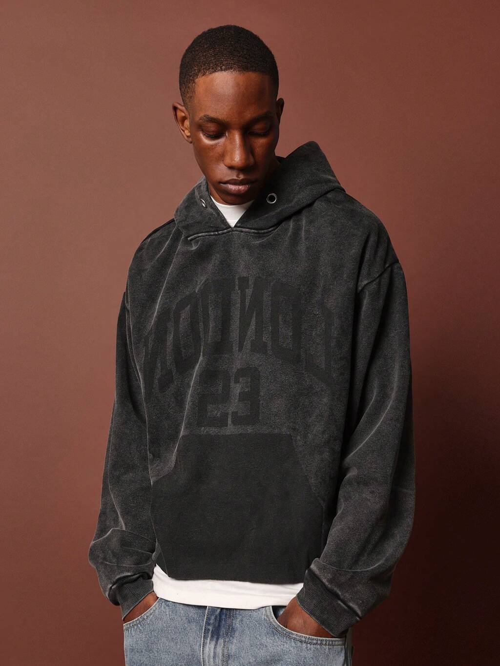Oversized Gothic Script Print Centre Pocket Hoodies