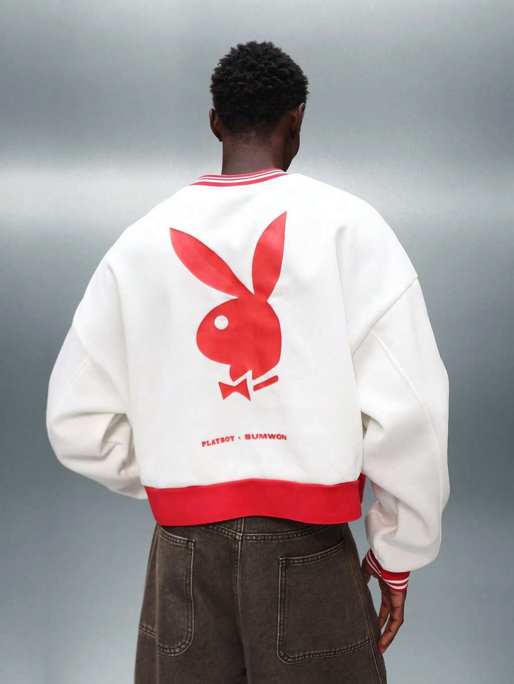 PLAYBOY X SUMWON Varsity Style Crop Sweatshirt With Logo Print