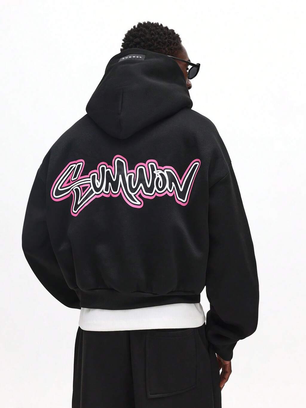 PLAYBOY X SUMWON Oversized Crop Pullover Hoodie With Drawstring