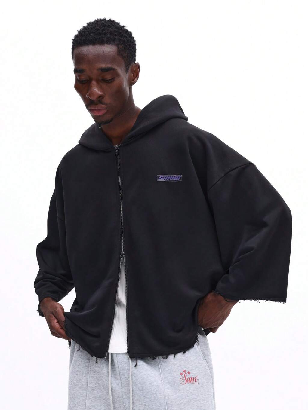 Boxy Fit Full Zip Hoodie With Sleeve Graphics