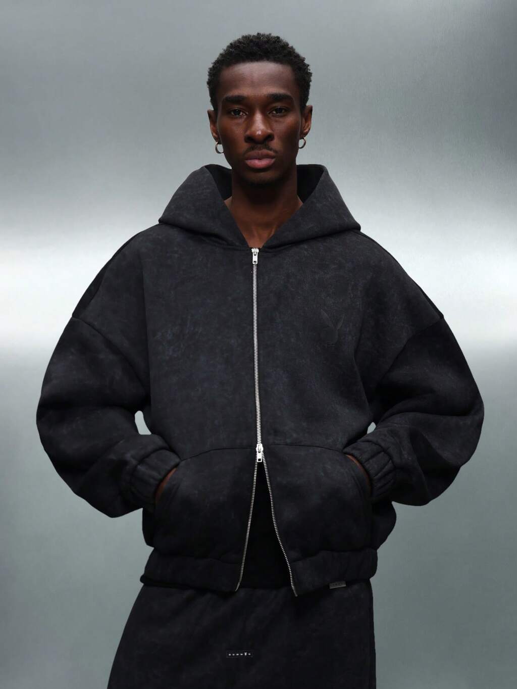 PLAYBOY X SUMWON Boxy Full Zip Hoodie With Hood