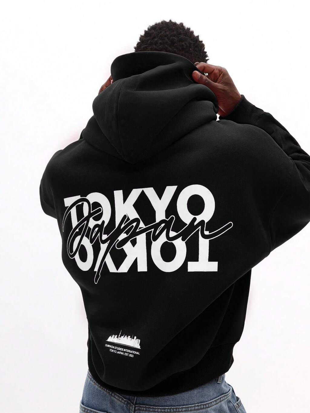 Graffiti Print Hoodie With Tokyo Text