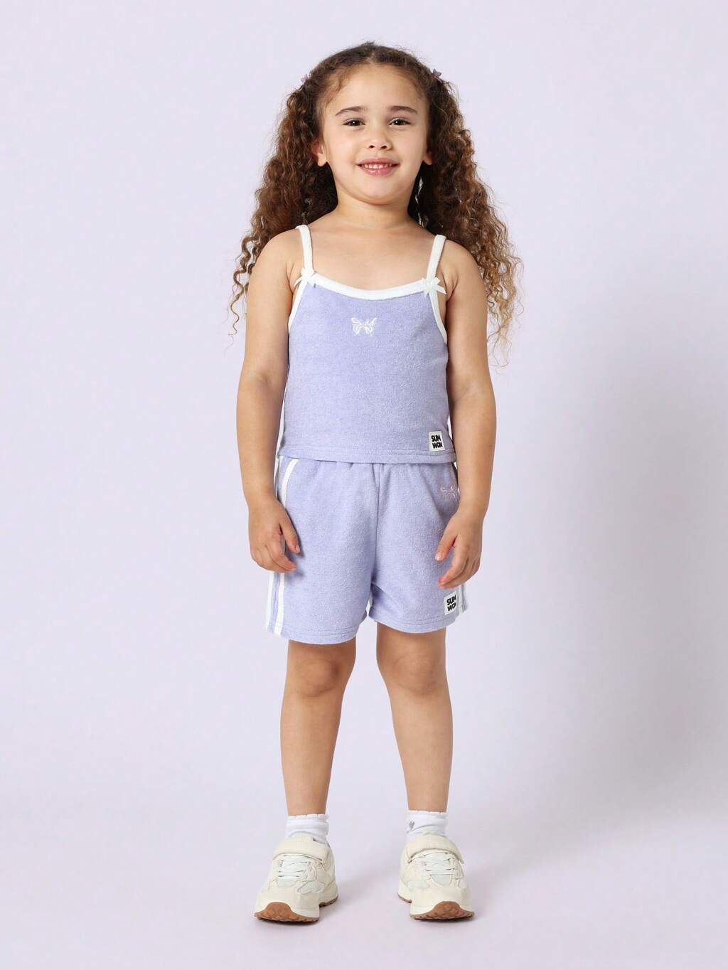 Girls Terry Cloth Tank Top And Shorts Set With Bow Straps