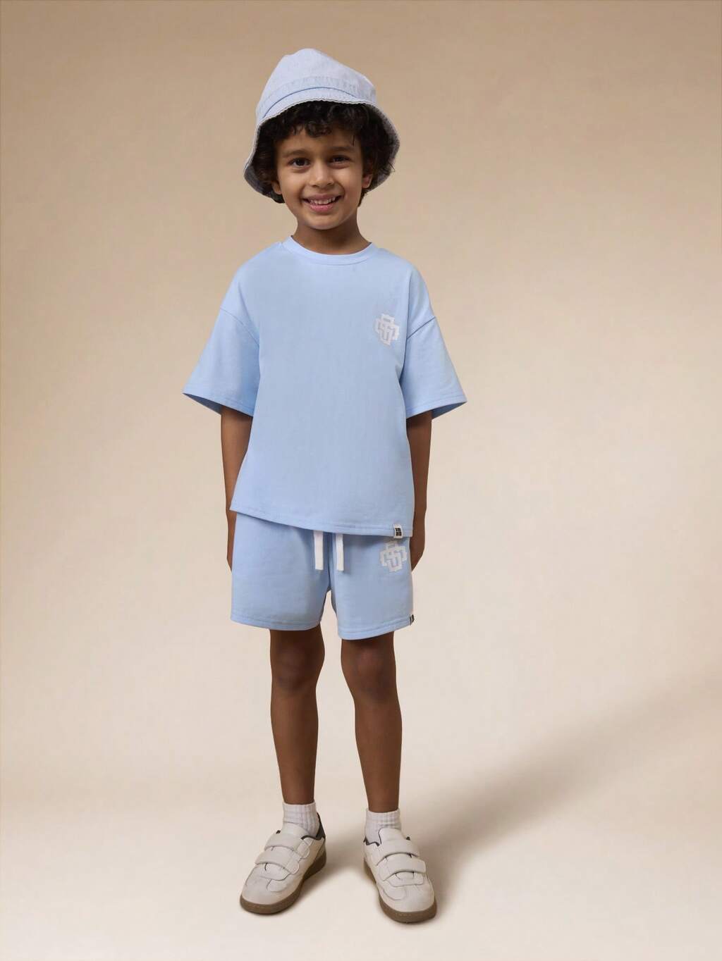 Boys Summer Hello Sun Graphic Oversized Crew Neck Short Sleeve T-Shirt And Athletic Runner Shorts Two Piece Coordinate Set