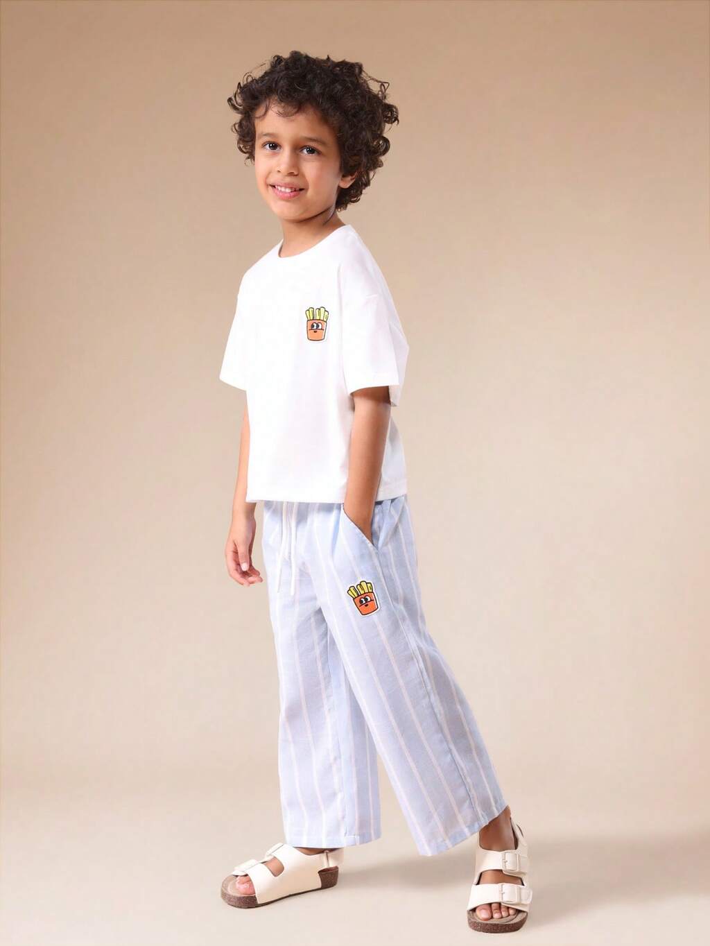 French Fries Character T-Shirt And Striped Pants Set