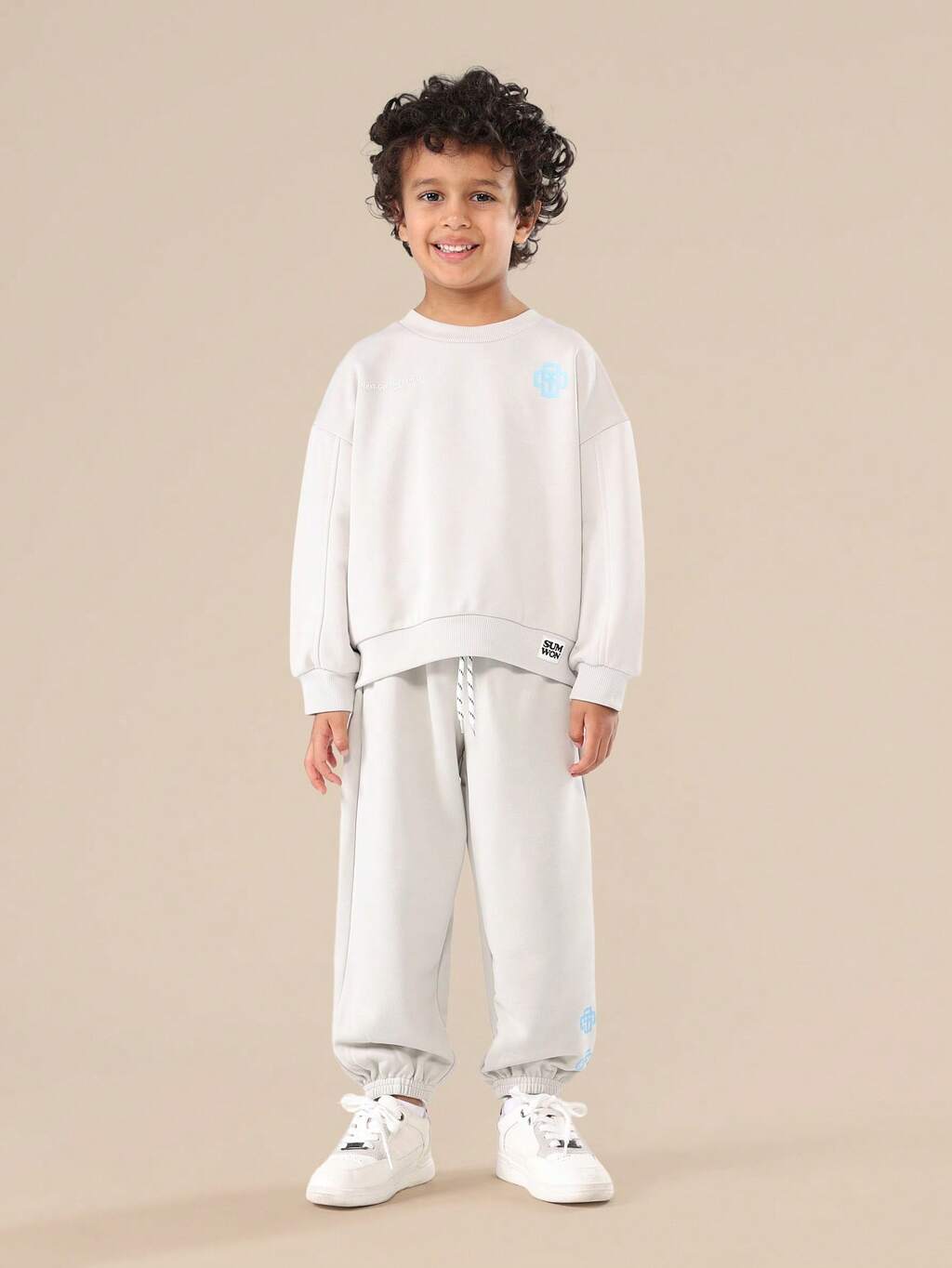 Boys Summer Co-Ord Set With Printed Text Short Sleeve T-Shirt And Drawstring Jogger Pants Casual Comfortable Two Piece Outfit