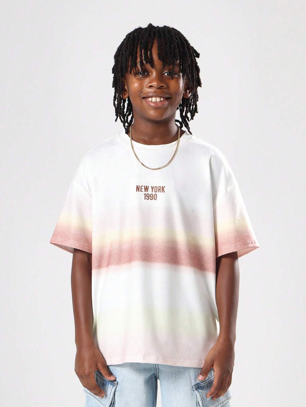 White Graphic T-Shirt With Sunset Ombre Print