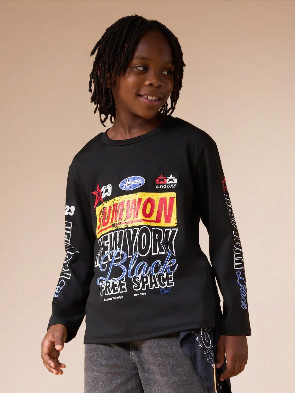 Long Sleeve Graphic Tee With Brooklyn Print
