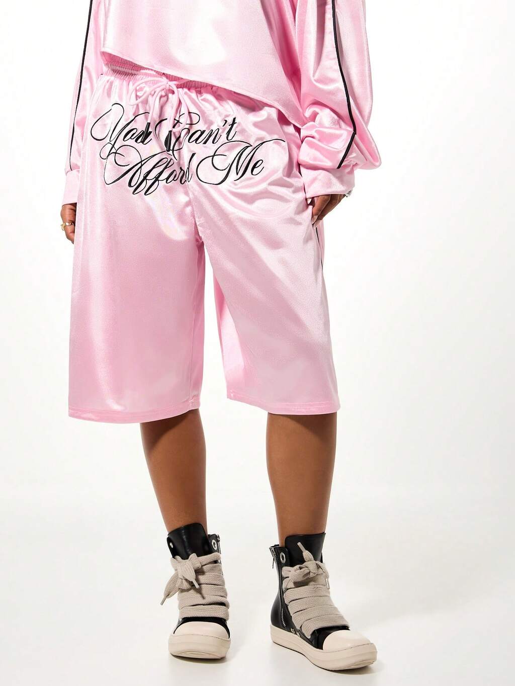 SUMWON WOMEN Satin Basketball Shorts With Script Text