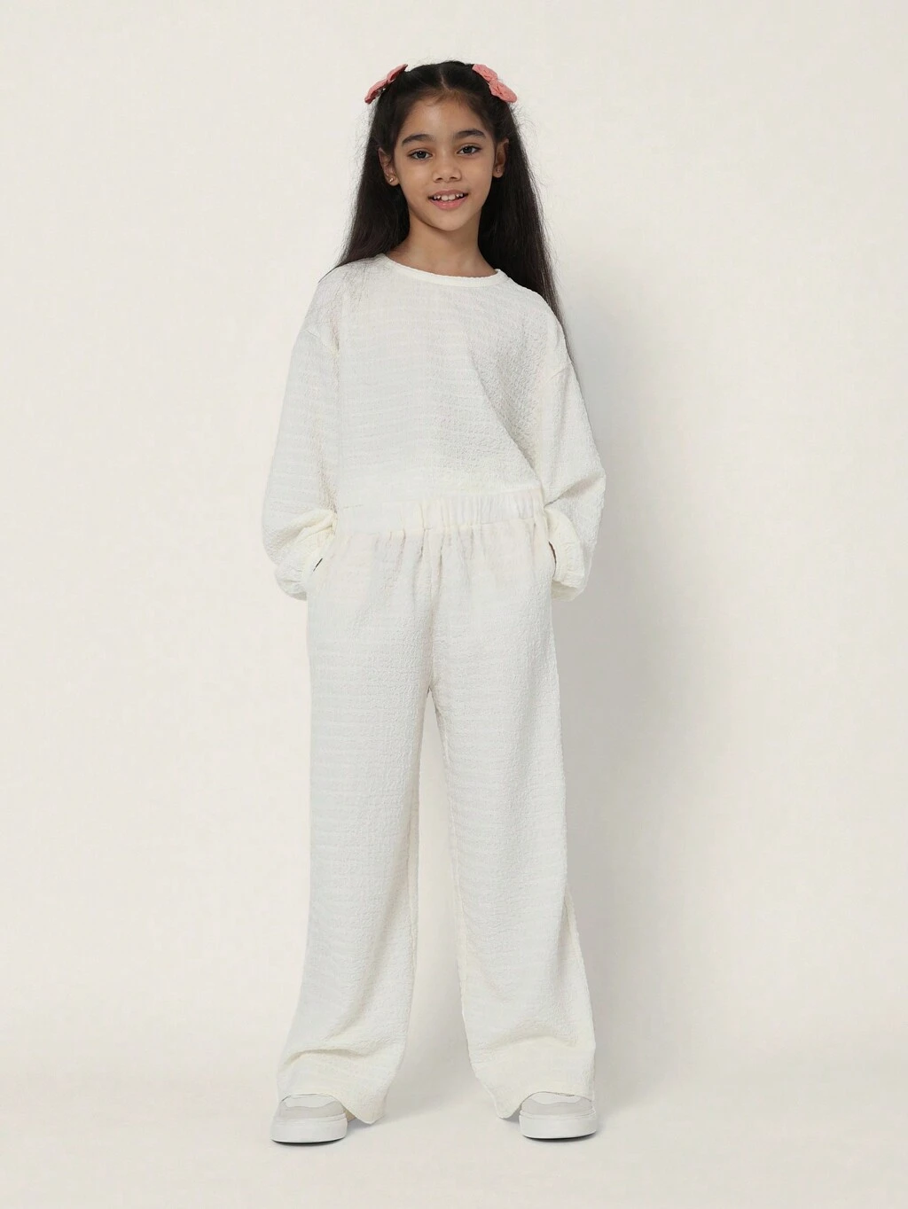 Textured Crinkle Long Sleeve Palazzo T-Shirt Co-Ord