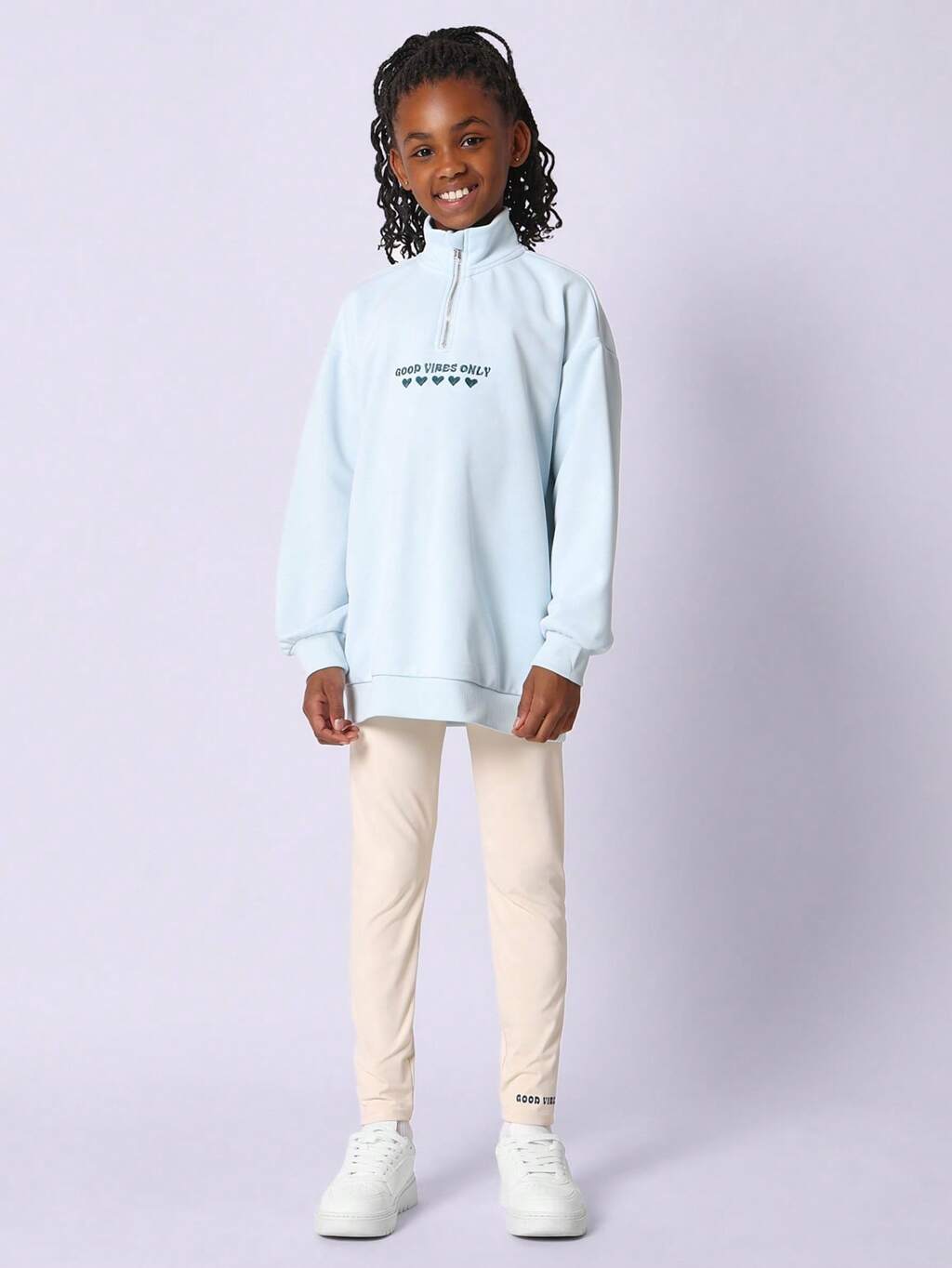 Good Vibes Only Hearts Half-Zip Sweatshirt Outfit