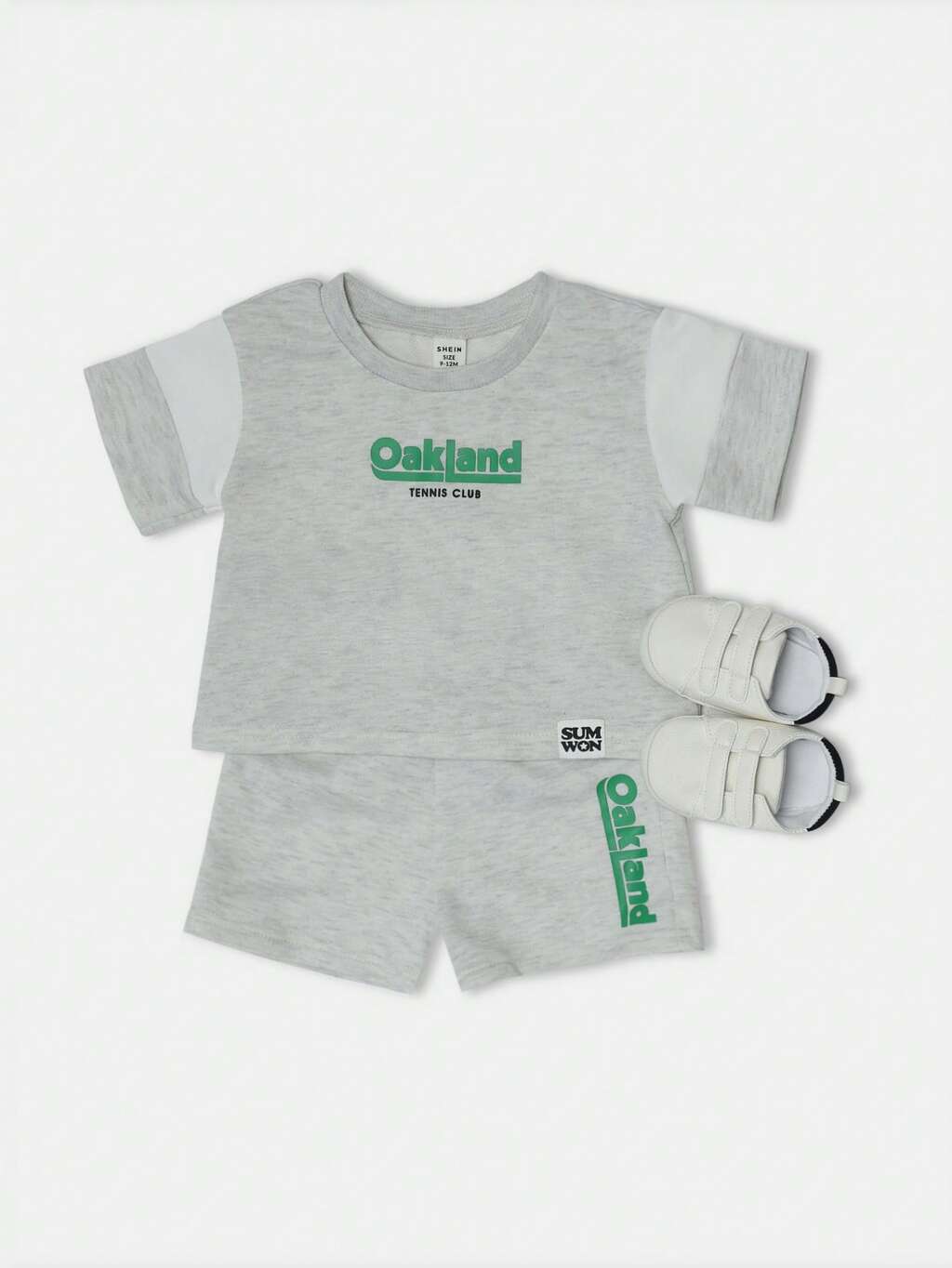 Oakland Varsity Logo T-Shirt And Shorts Set With Raglan Sleeves