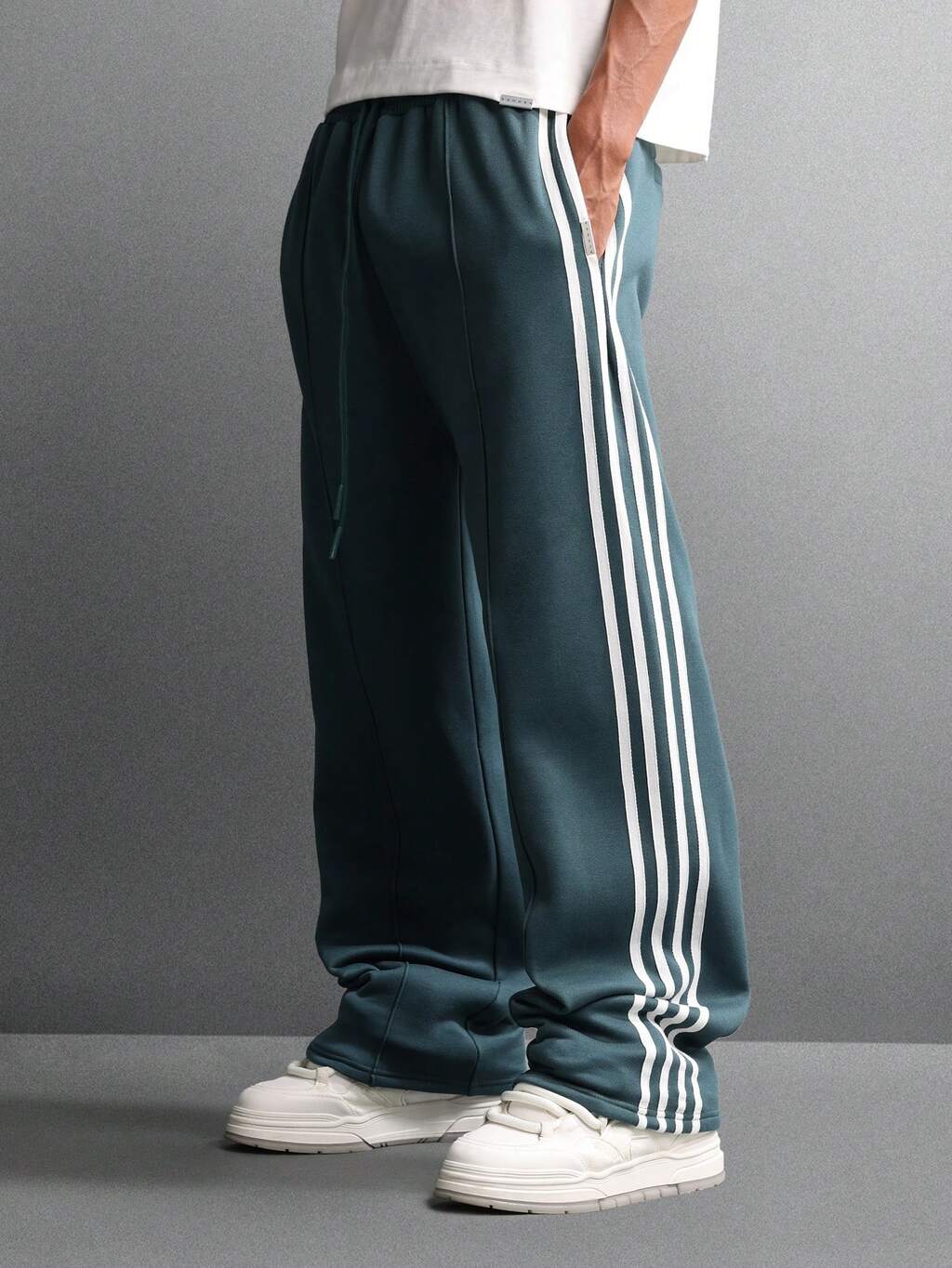 Comfortable Oversized Side Stripe Drawstring Waistband Fleece Sweatpants With Side Pockets Basketball Loungewear, Long Sweat Shorts Men, Jogging Shorts For Men, Baggy Shorts For Men
