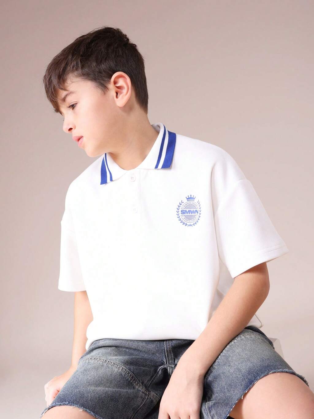 Boys England Inspired Polo Co-Ord Set White Jersey Short Sleeve Top Navy Blue Shorts Summer Casual Comfort Fit Tween Outfit