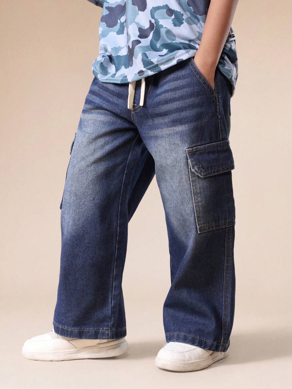 Boys Wide Leg Pull On Cargo Pants With Multiple Pockets Relaxed Fit Casual Everyday Bottoms