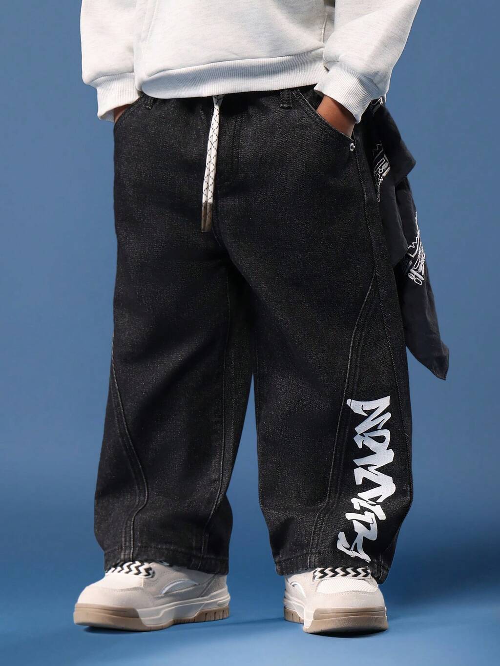 Boys Relaxed Fit Light Wash Wide Leg Denim Jeans With Seam Detail And Barrel Silhouette