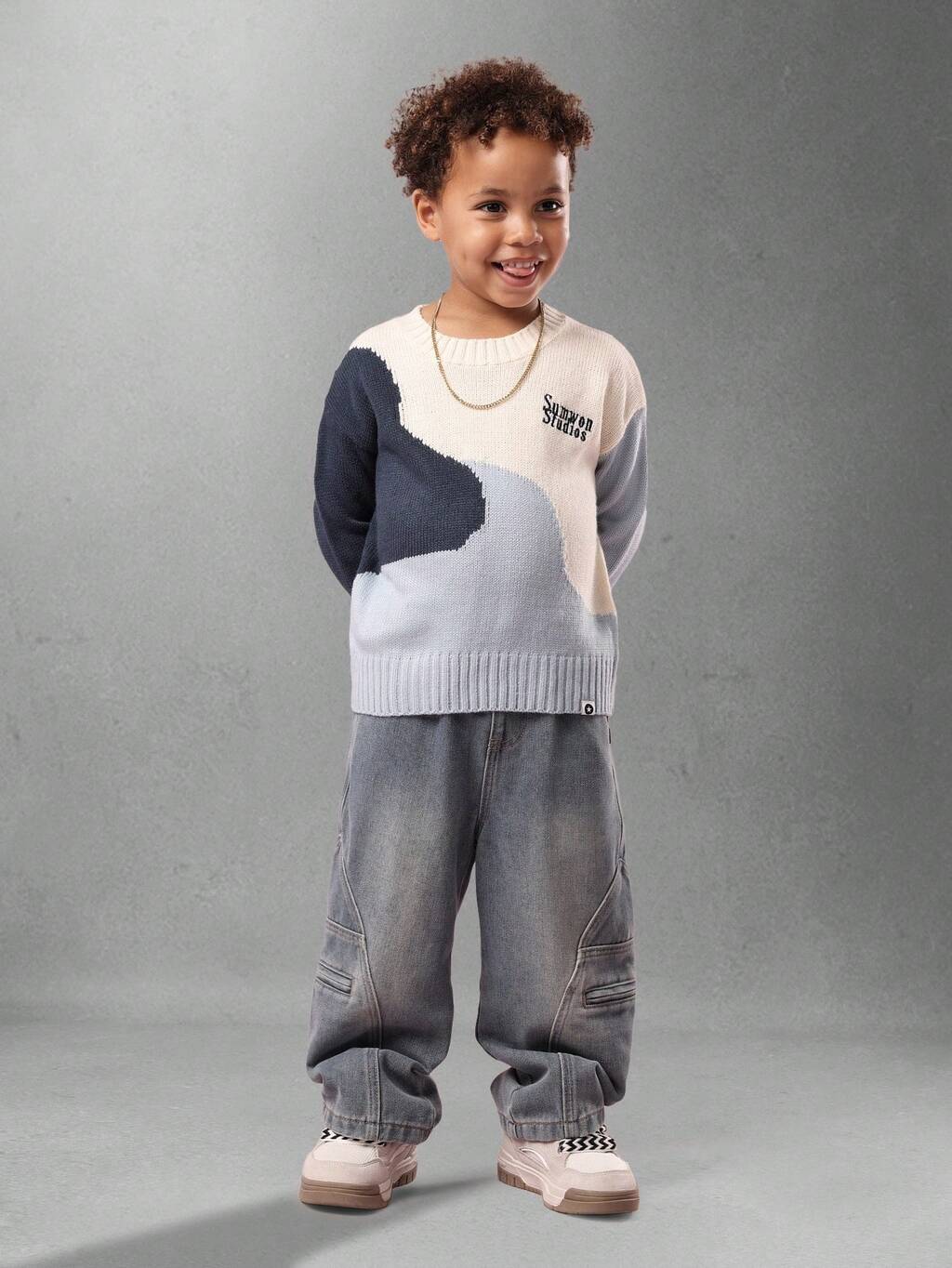 Striped Knit Sweater With Badge Detail And Ribbed Texture