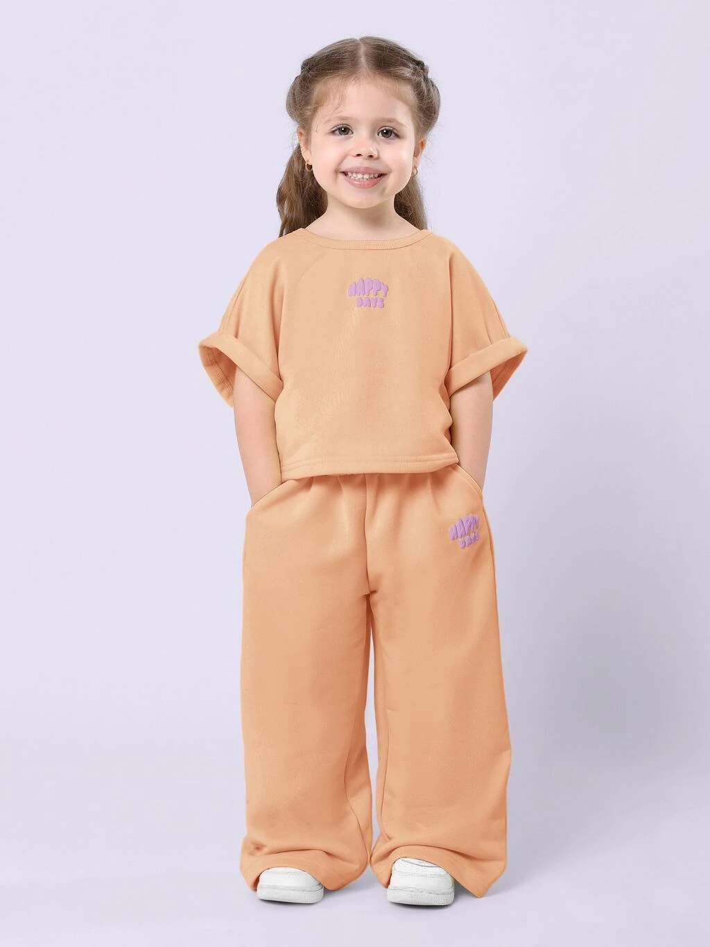 Happy Days Turn Back Wide Leg Co-Ord Set Girls Casual Comfortable Outfit With Purple Print