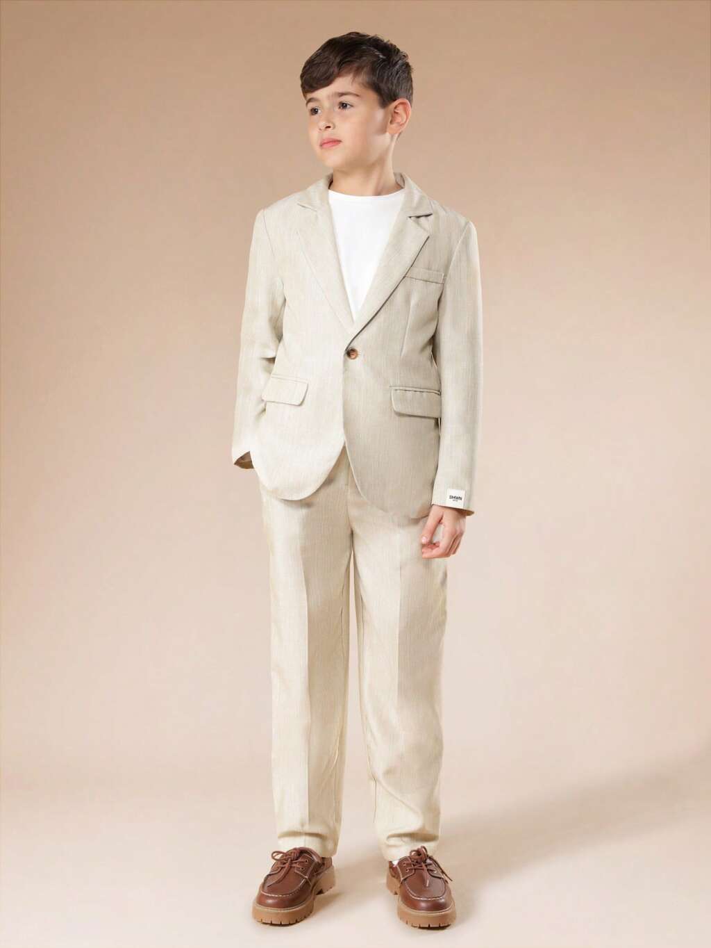 Boys Crew Neck Short Sleeve T-Shirt And Shorts Coordinating Set With Cursive Script Print Casual Summer Matching Outfit