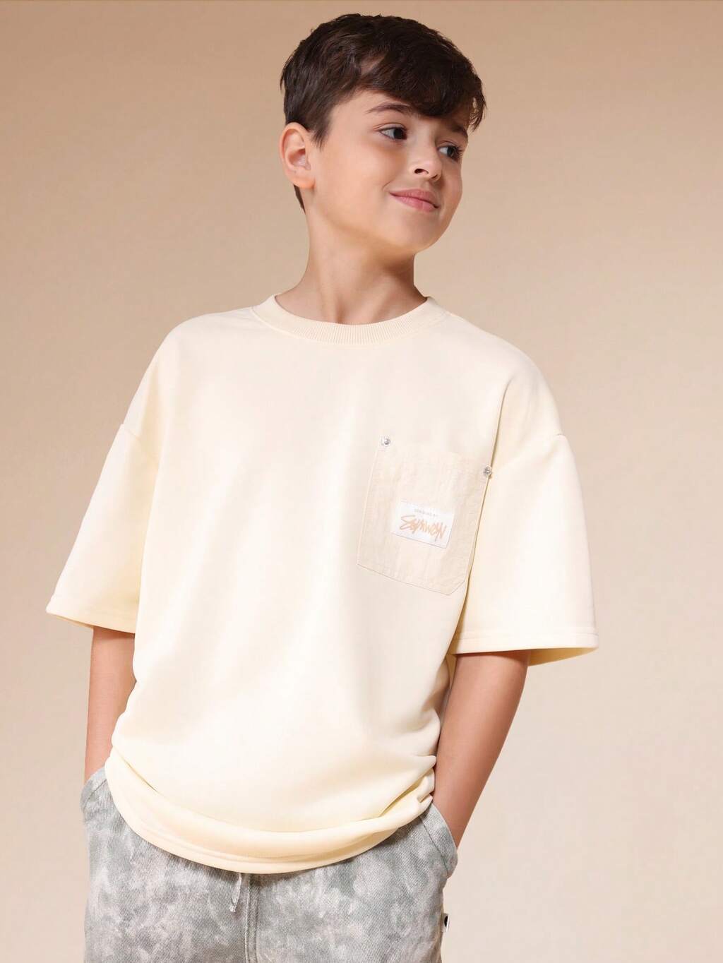 Boys Oversized Crew Neck Tee With Chest Pocket Short Sleeve T-Shirt Casual Everyday Wear