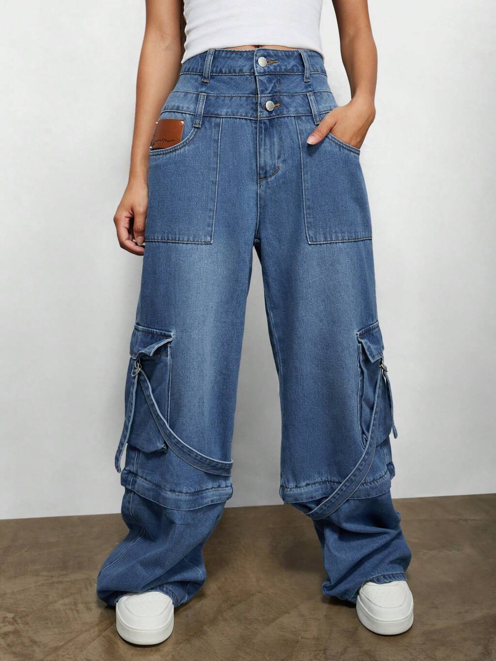 SUMWON WOMEN Street Straight Fit Double Waistband Utility Jean With Hybrid Zip Convertible To Jort
