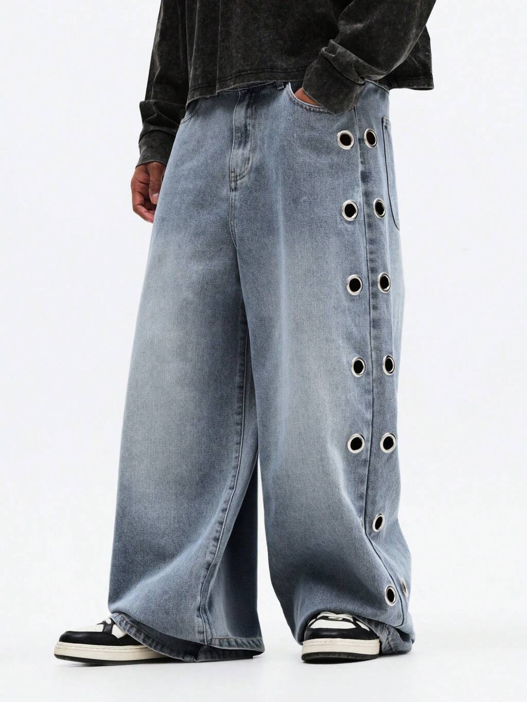 Wide Leg Jeans With Metal Eyelet Details