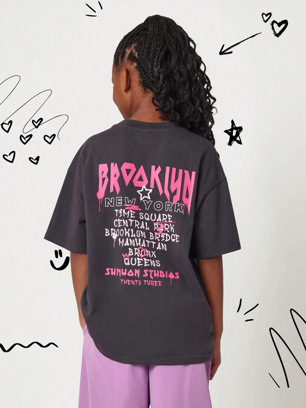 Tween Girls Oversized Tee With Front Print