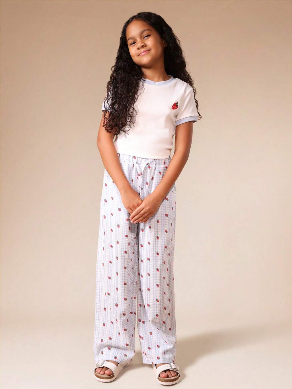 Tween Girls Baby Tee And Straight Fit Nylon Stripe Pant 2 Piece Set