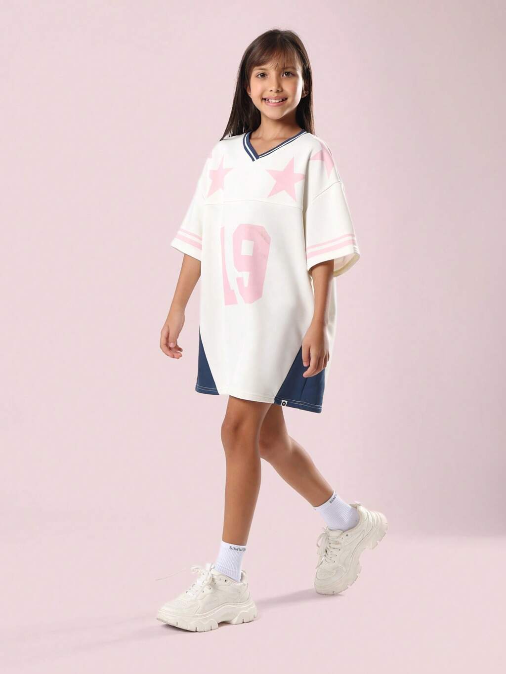 Oversized T-Shirt Dress With Varsity Number Print And Stars
