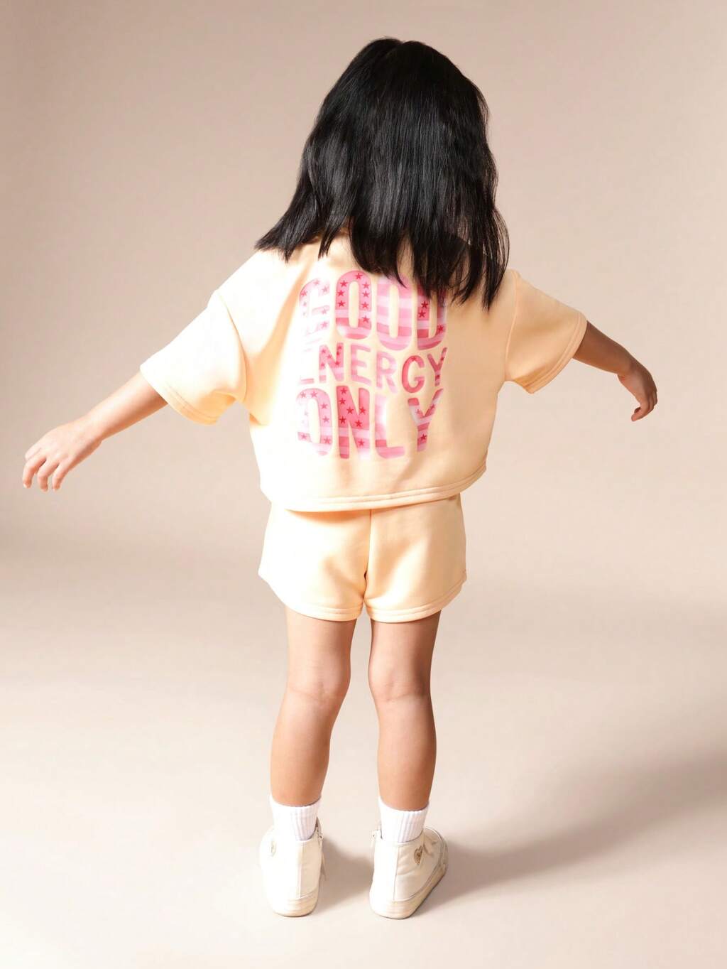 Young Girls Light Blue Casual Two Piece Co Ord Set With Bubble Letter Print Short Sleeve Top And Comfortable Shorts Perfect Summer Outfit