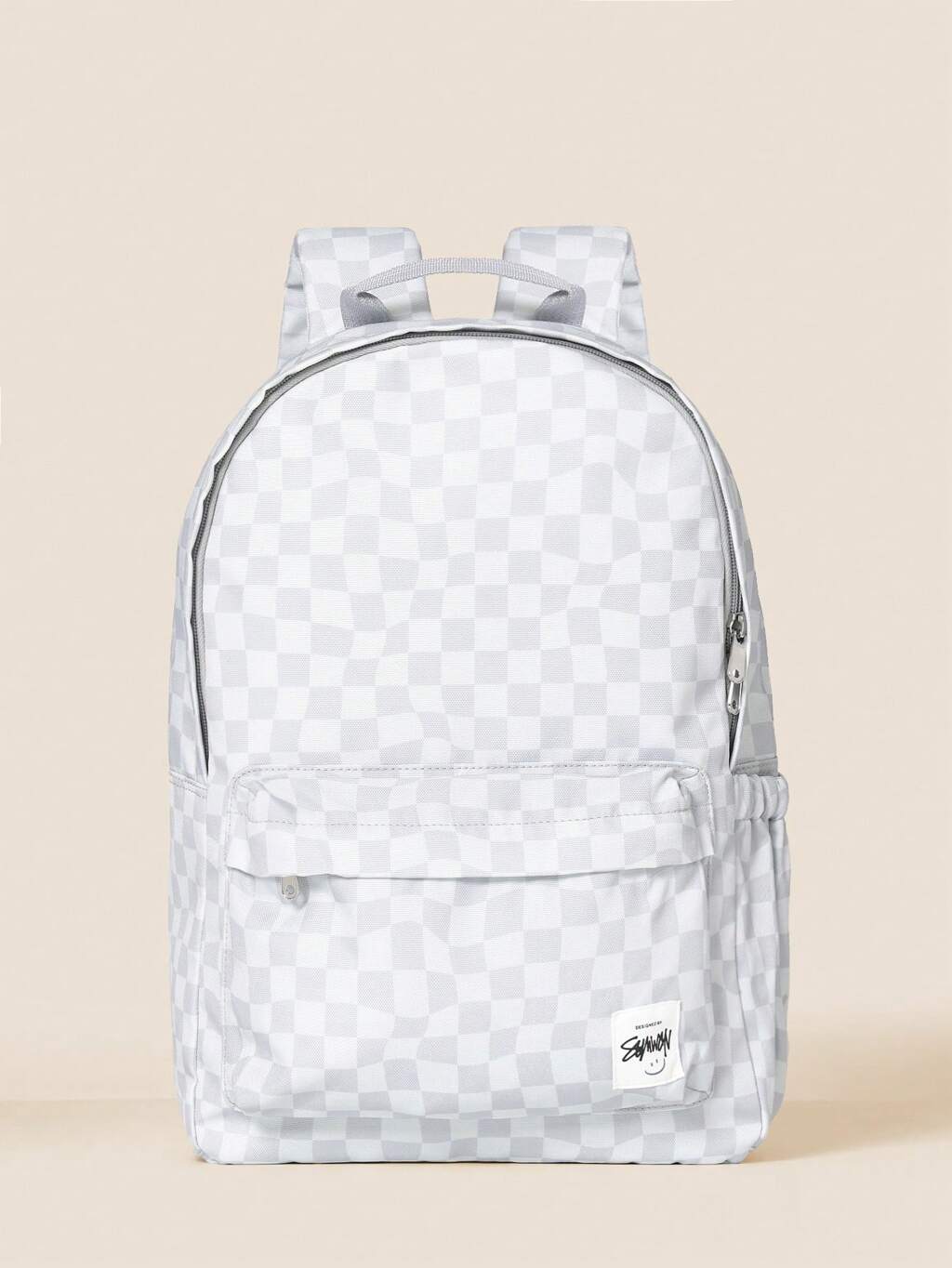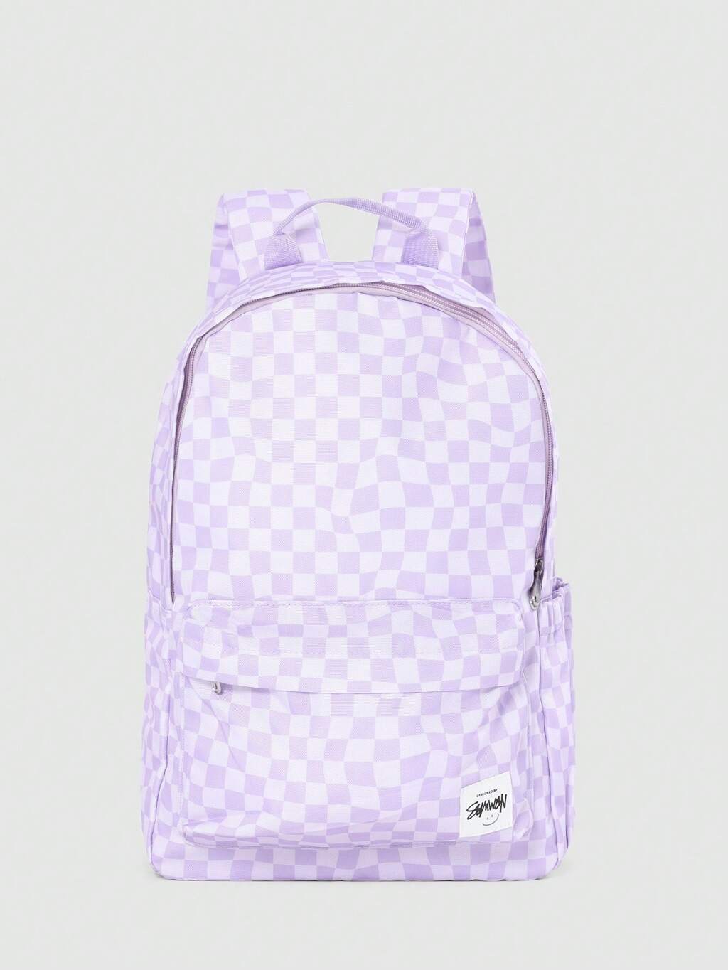 Checkered Pattern Backpack With Front Pocket