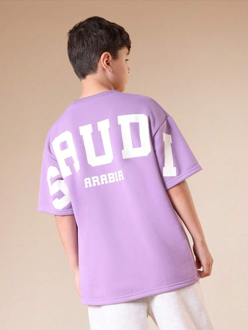 Boys Casual Crew Neck Short Sleeve Purple Graphic Tee With Saudi Arabia Print Regular Fit T-Shirt