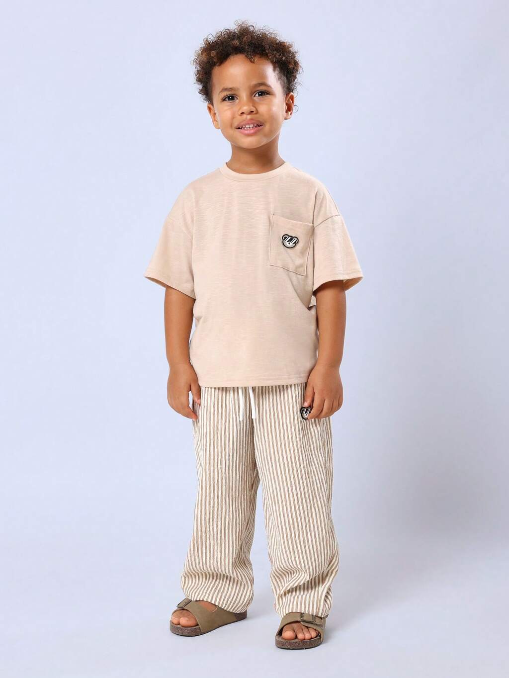 Casual Pocket T-Shirt And Striped Pants Co-Ord Set