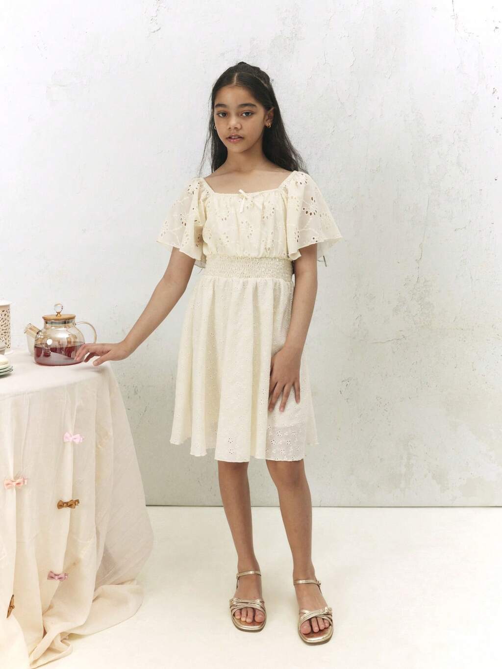 Tween Girls White Broderie Anglaise Co-Ord Set Short Sleeve Shirt Wide Leg Pants Summer Holiday Vacation Outfit