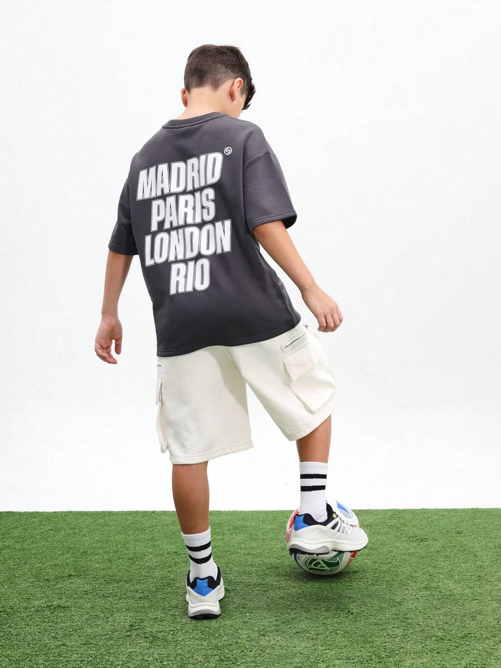 Boys Oversized City Names Graphic T-Shirt With Madrid Paris London Rio Print Short Sleeve Crew Neck Tee Summer Casual Streetwear , World Cup