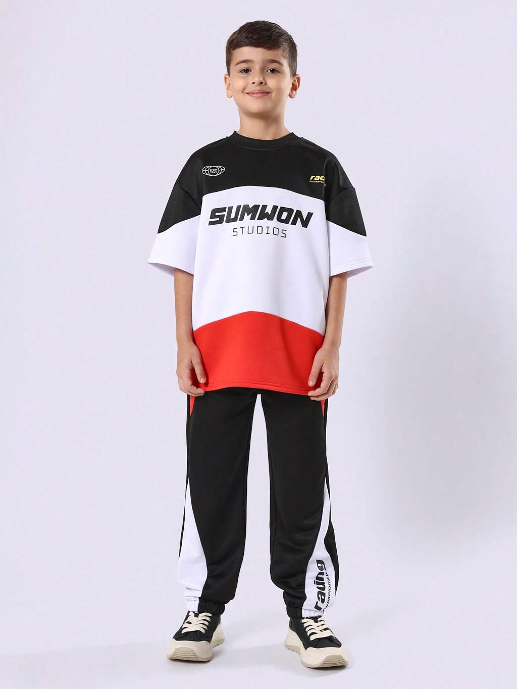 Boys Summer Colorblock T-Shirt And Shorts Co-Ord Set Oversized Short Sleeve Crew Neck Casual Tween Matching Outfit