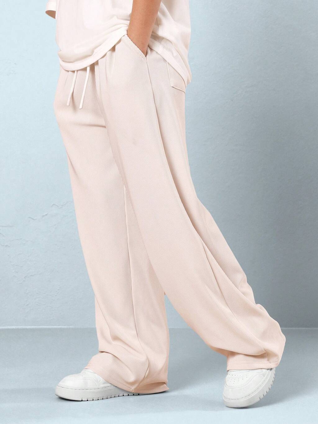 Ribbed Texture Wide Leg Drawstring Sweatpants