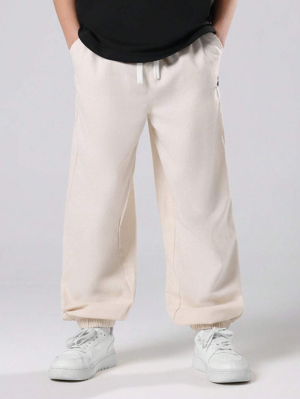 Linen Pull On Joggers With Elastic Ankles And Side Pockets