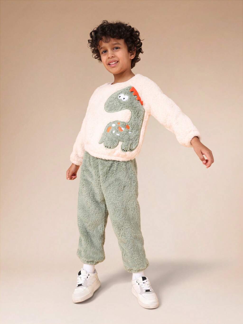 Dinosaur Hoodie With Sherpa Pants Set