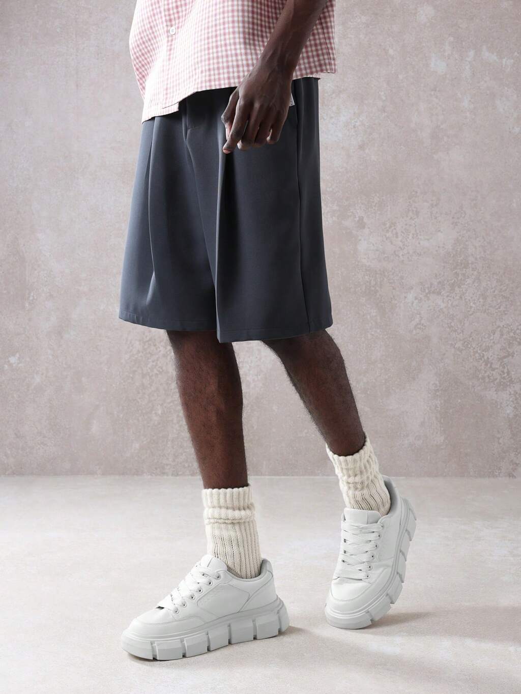 Tailored Pleated Front Bermuda Knee Length Wide Fit Men Shorts